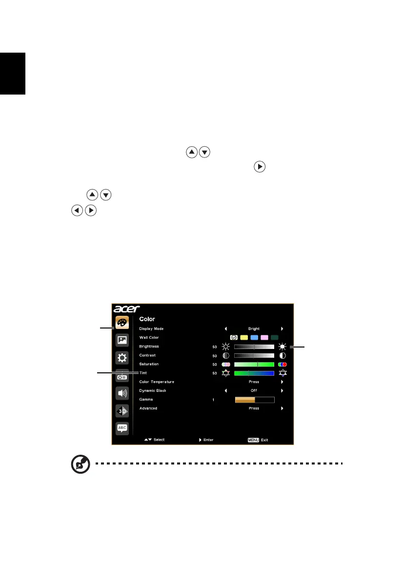 • To open the OSD menu, press "MENU" on the control panel or remote