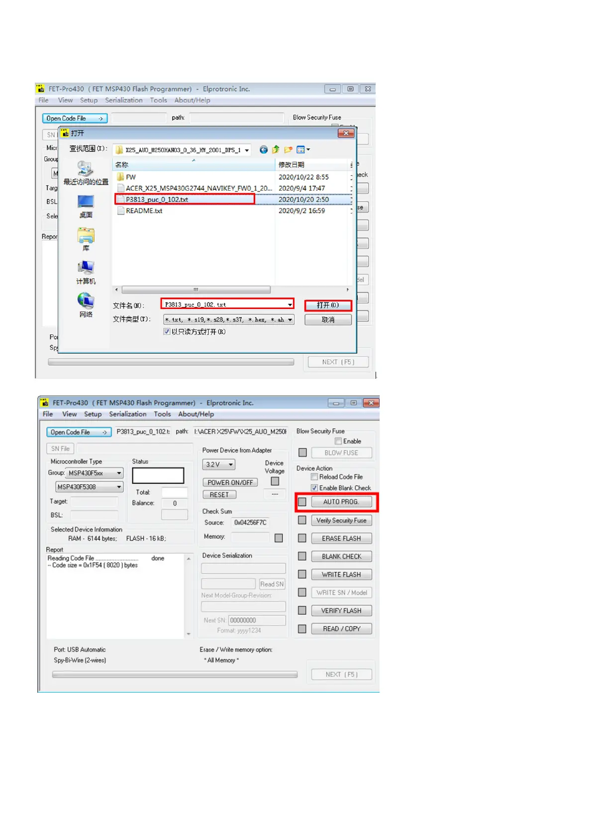 Guarantee the type of IC is same with TOOL setting, click “AUTO PROG” button to update.
