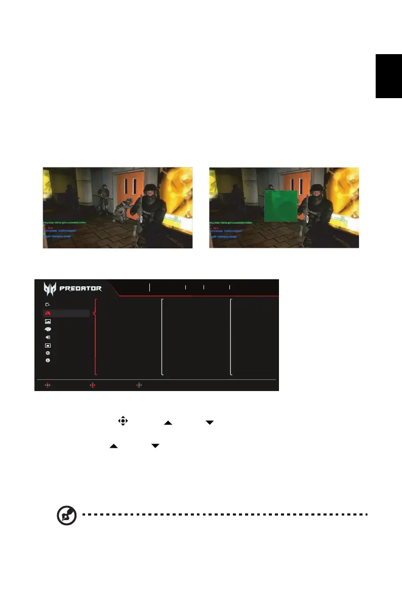 2. Toggle the joystick to the up or down to select Gaming from the OSD. Then