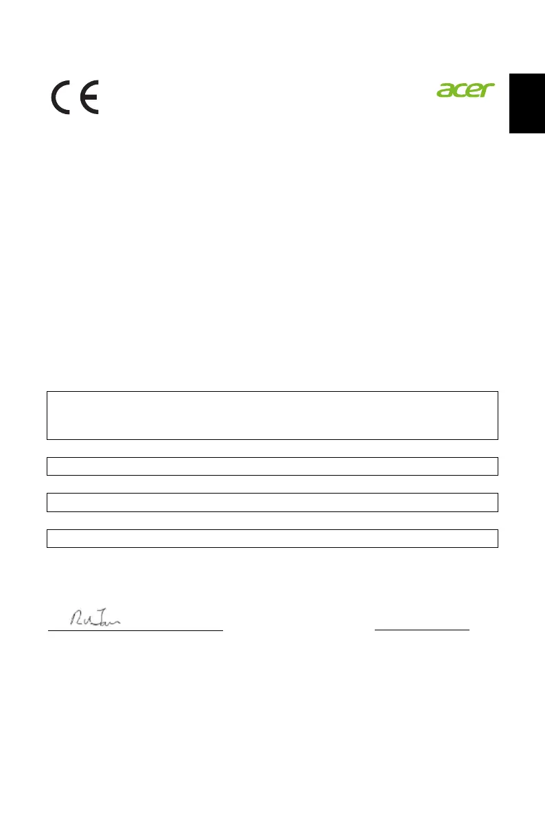 We, Acer Incorporated, hereby declare under our sole responsibility that the product described