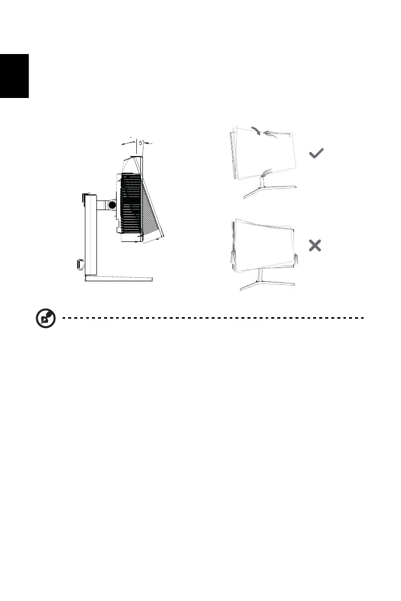 hold the edges of the monitor. The monitor can be adjusted to 20 degrees up or 5 degrees