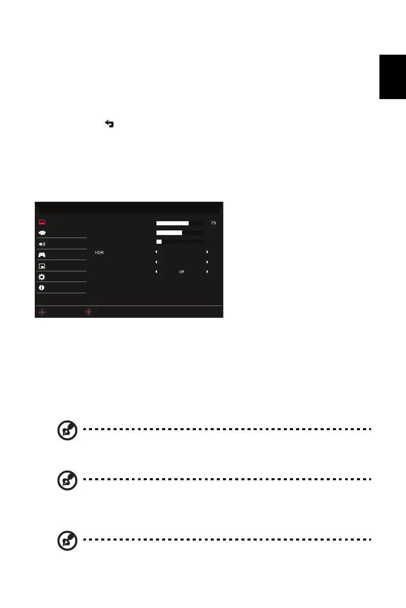2. Using the button, select Picture from the OSD. Then navigate to the setting you