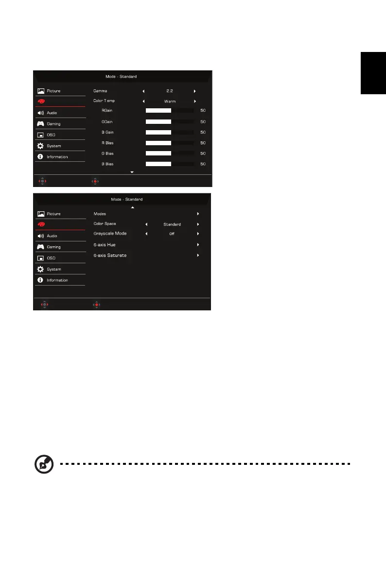 2. Using the button, select Color from the OSD. Then navigate to the setting you