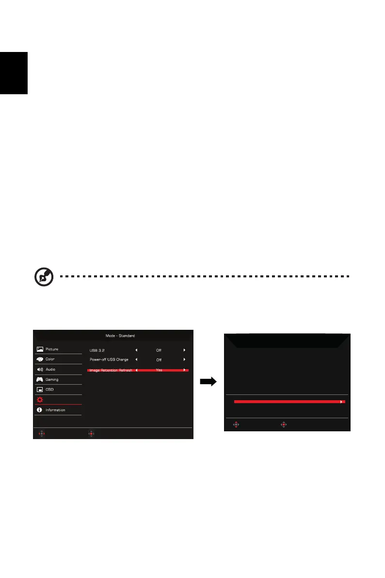 the monitor is turned off. You can also start Image Retention Refresh manually via OSD menu.