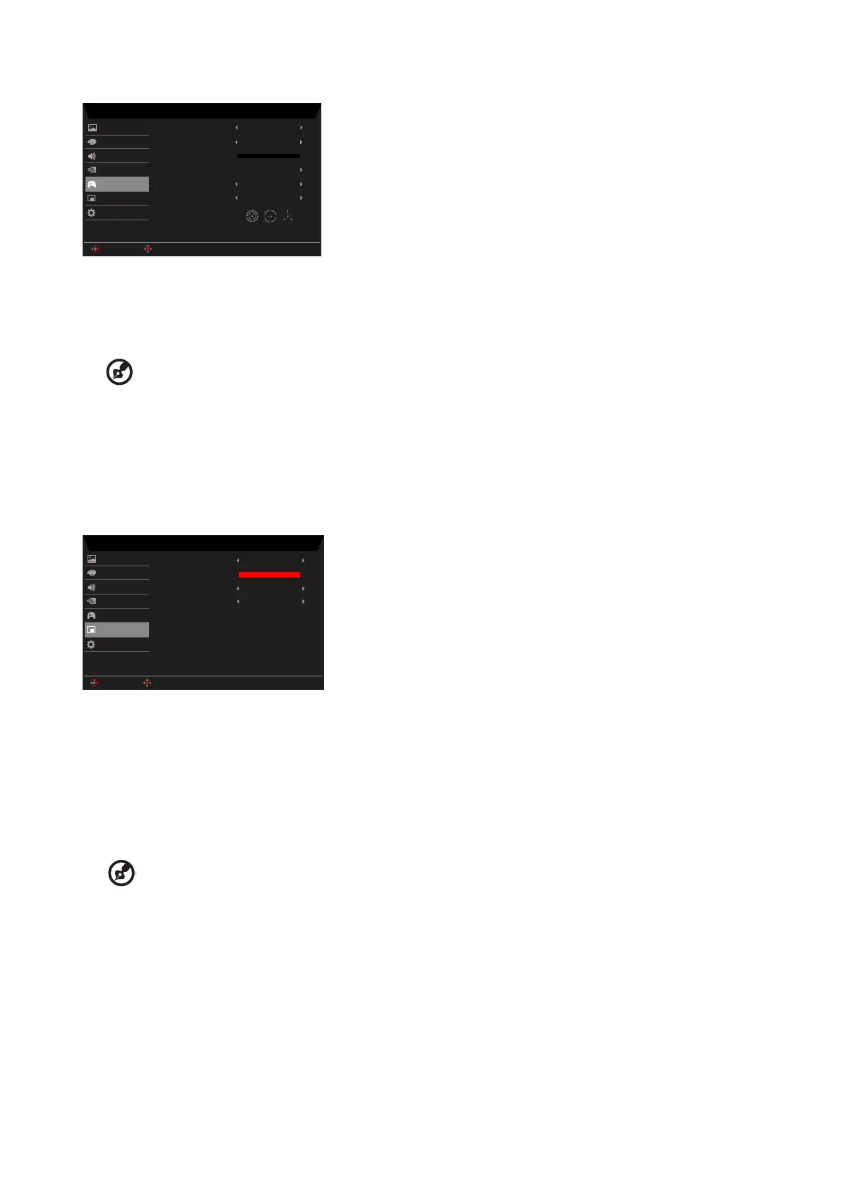 2. Toggle the joystick to the up or down to select Gaming from the OSD.Then toggle to the right to