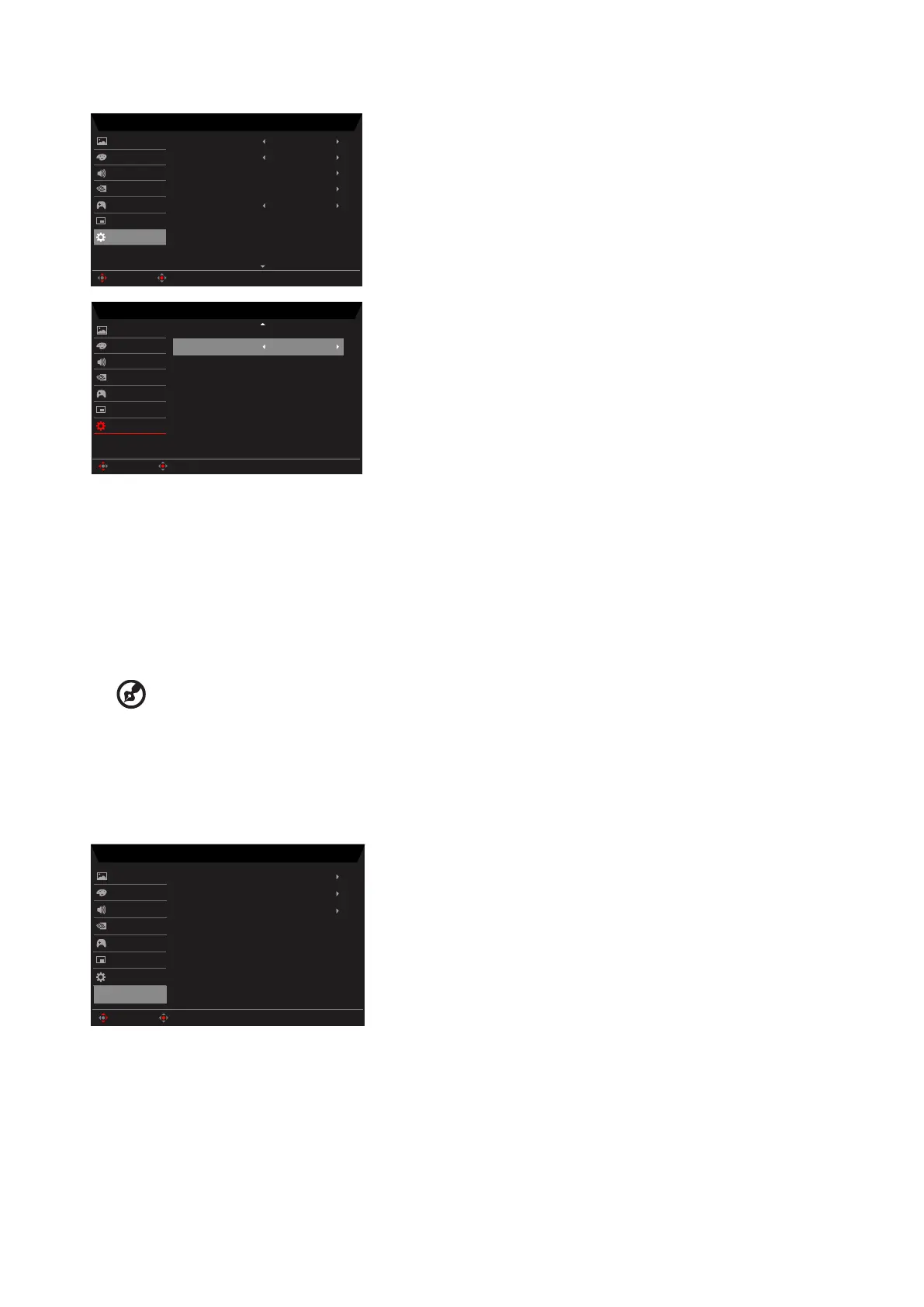 2. Toggle the joystick to the up or down to select "Save Setting to..." from the OSD.Then toggle to the right to