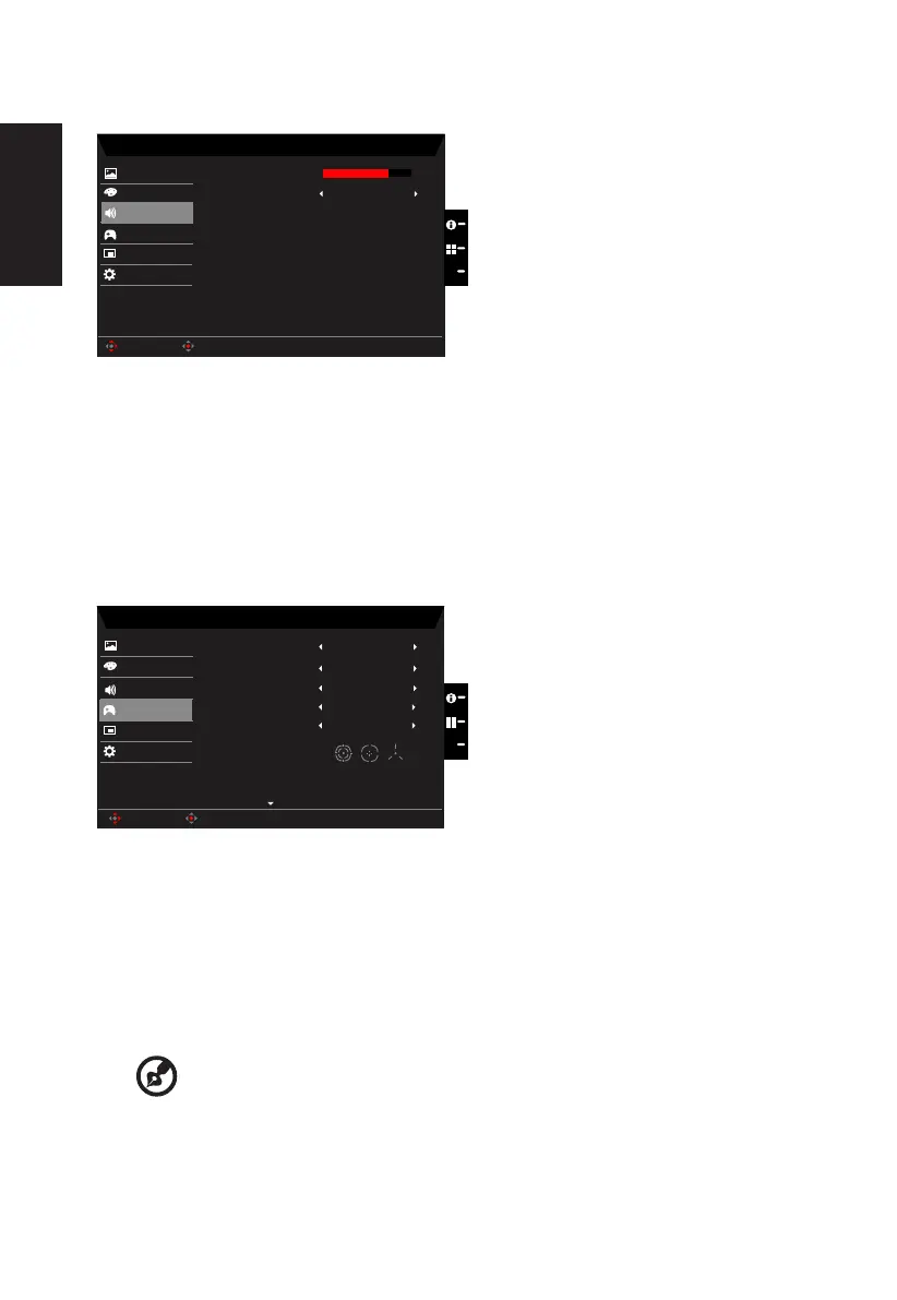 2. Toggle the joystick to the up or down to select Audio from the OSD.Then toggle to the