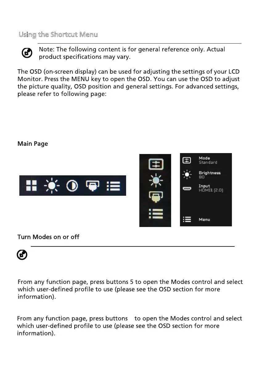 Acer XFA243Y - Using the Shortcut Menu