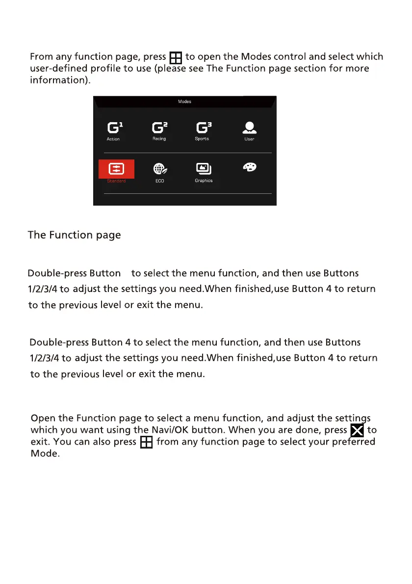 Button Menu/Navi/Ok to return to the previous level or exit the menu.