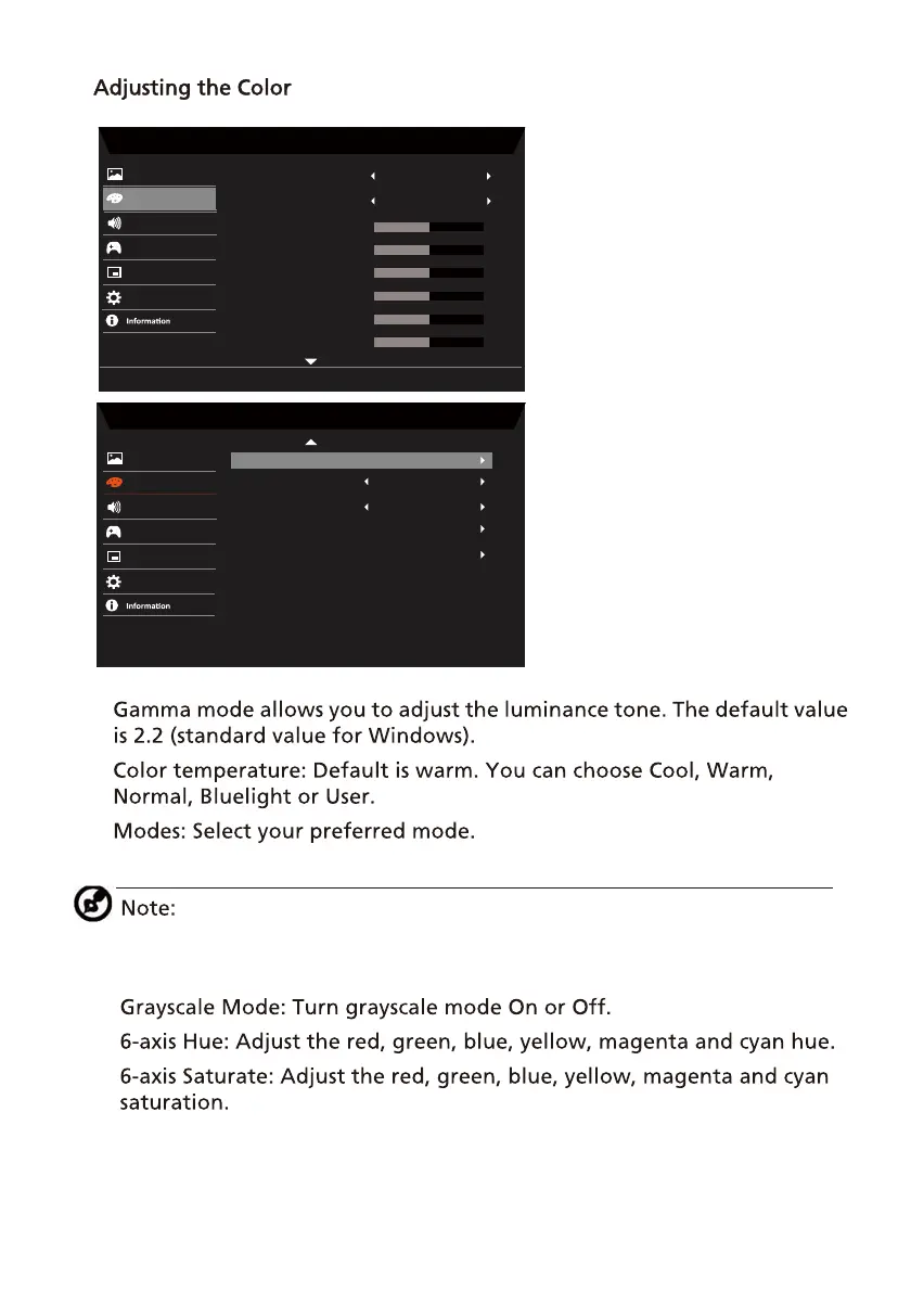 Acer XFA243Y - Adjusting the Color