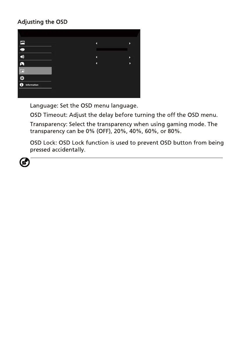 Acer XFA243Y - Adjusting the OSD