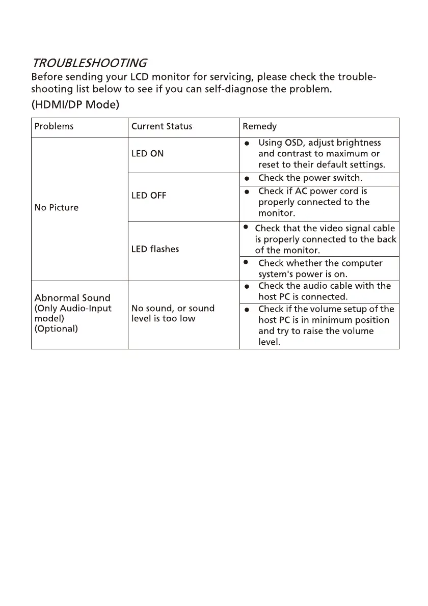 Acer XFA243Y - TROUBLESHOOTING