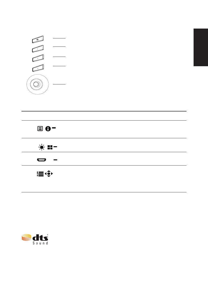 1 Power button Turns the monitor on/off.Blue indicates power on. Amber indicates
