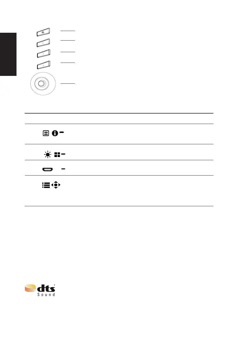 1 Power button Turns the monitor on/off.Blue indicates power on. Amber indicates