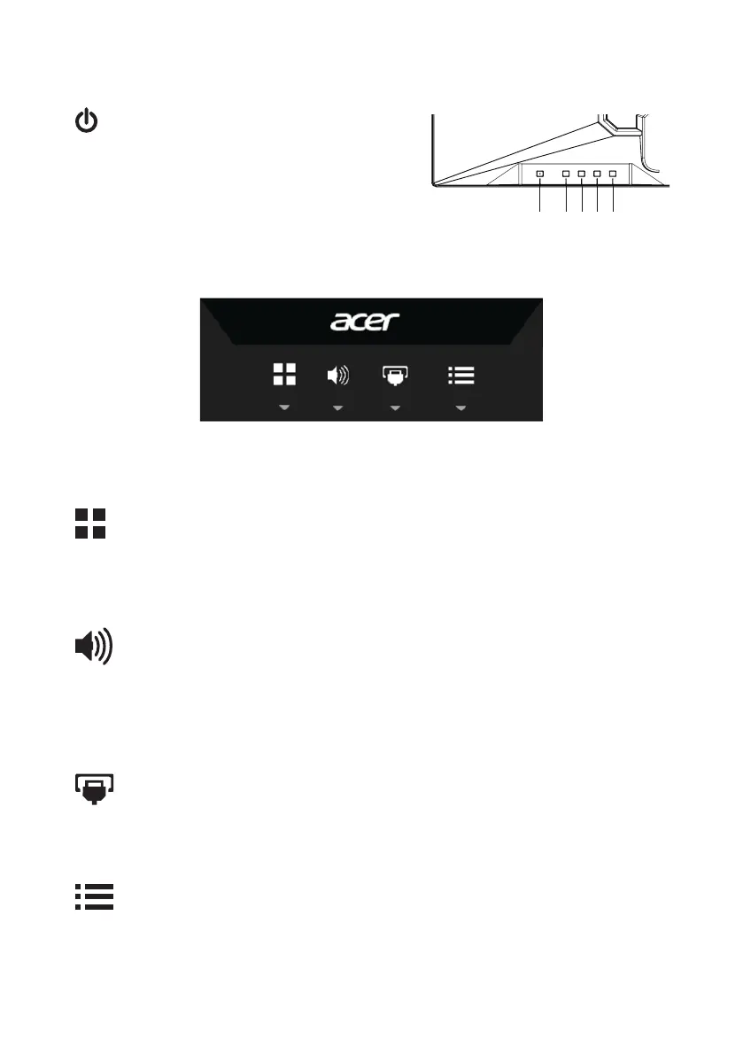 OSD メニューがアクティブのとき、このボタンは終了キーとして機 能します (OSD メニュ