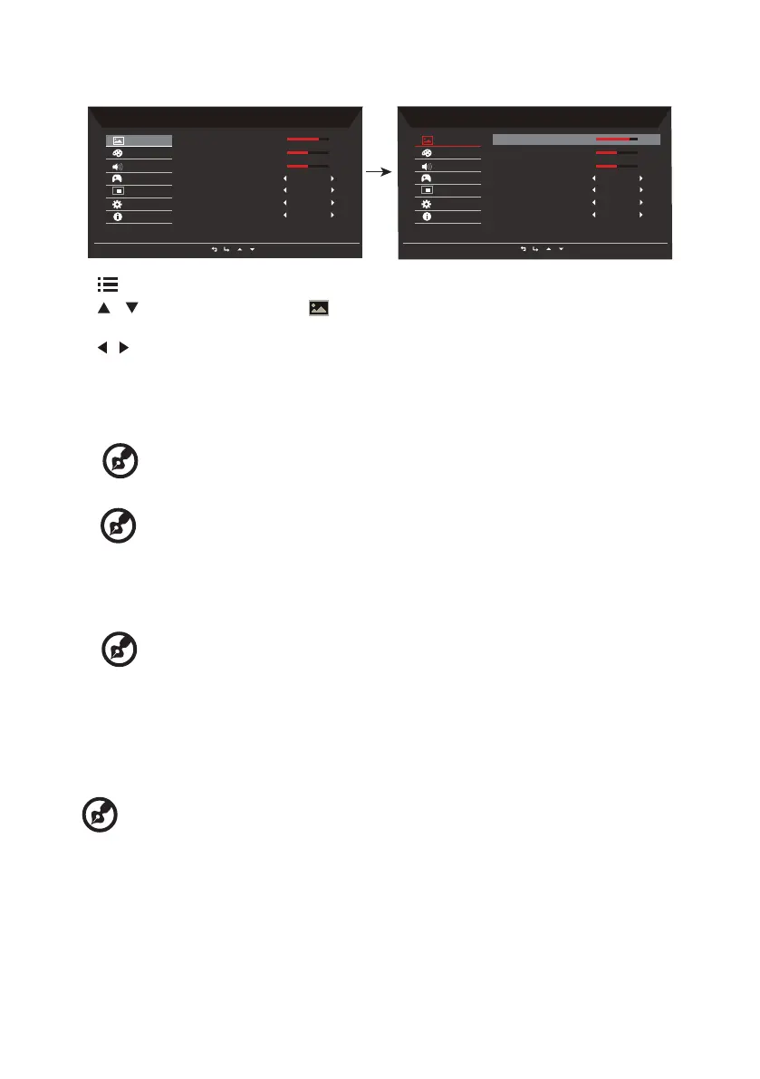 2. / キーを使って、OSDから Picture (画像調整)を選択します。その後、調整する