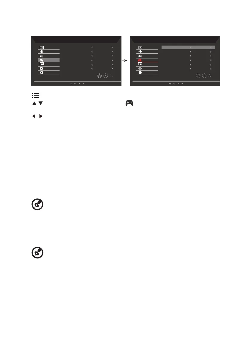 2. / キーを使用して、OSD メニューから Gaming (ゲーミング )を選択します。その