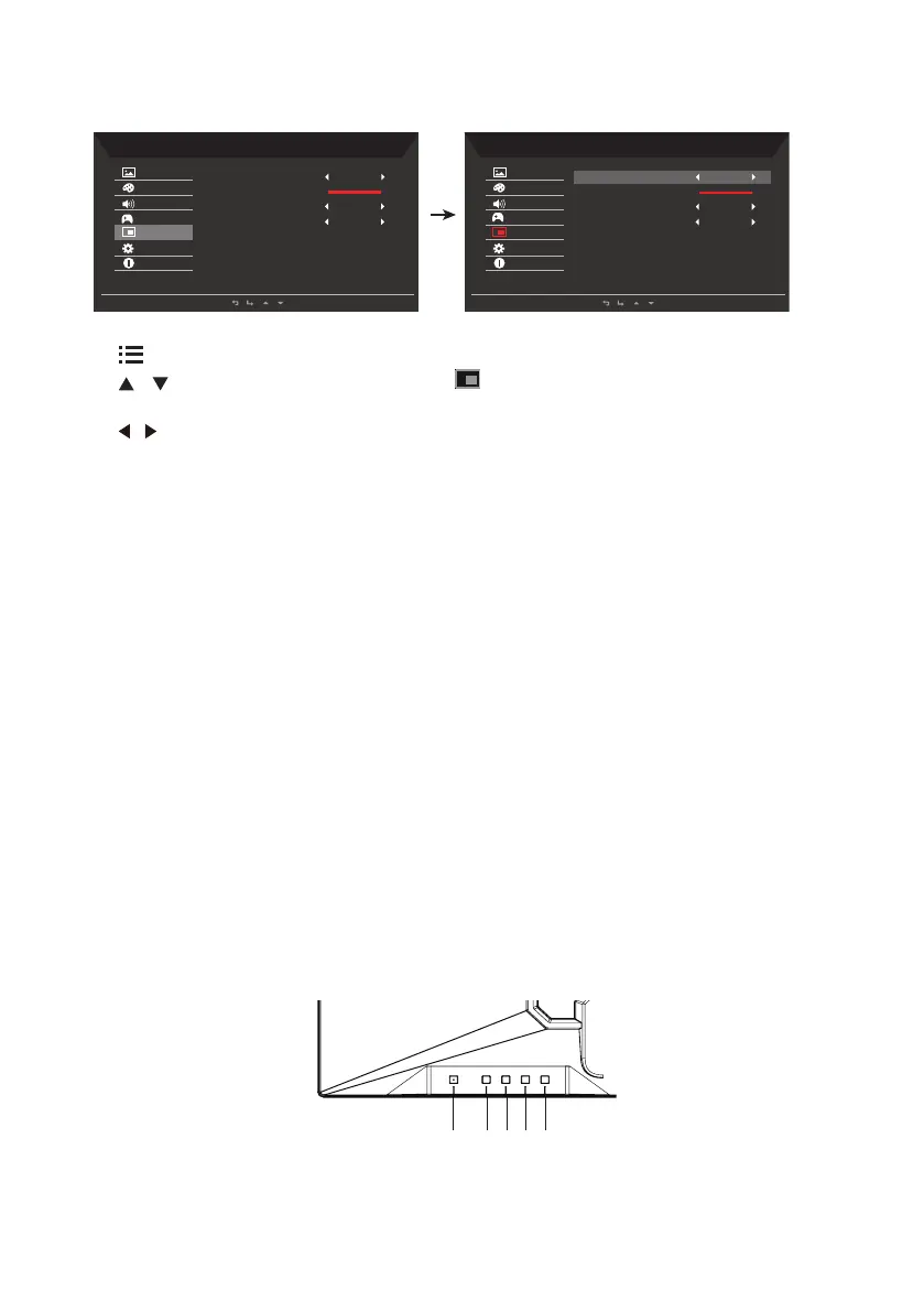 2. / キーを使って、OSD メニューから OSDを選択します。その後、調整する機能