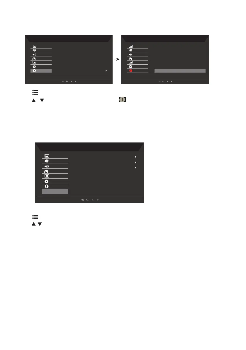 2. / キーを使って、OSD メニューから Information (製品情報)を選択します。現在