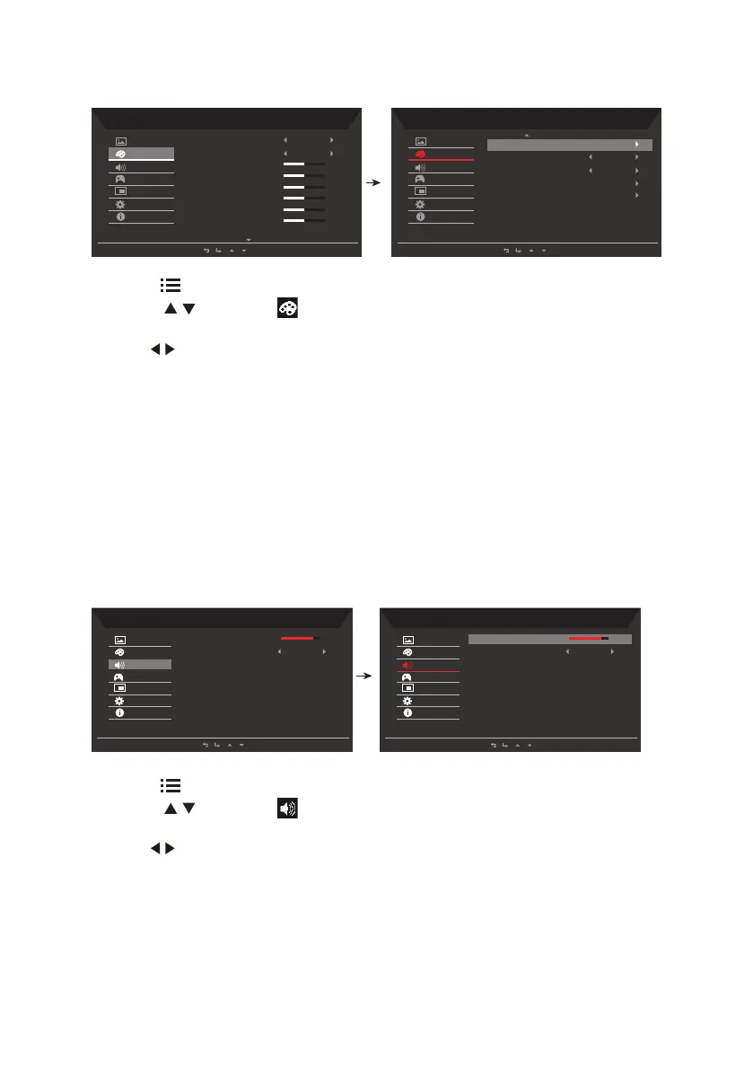 2. Using the / keys, select Audio from the OSD. Then navigate to the feature you