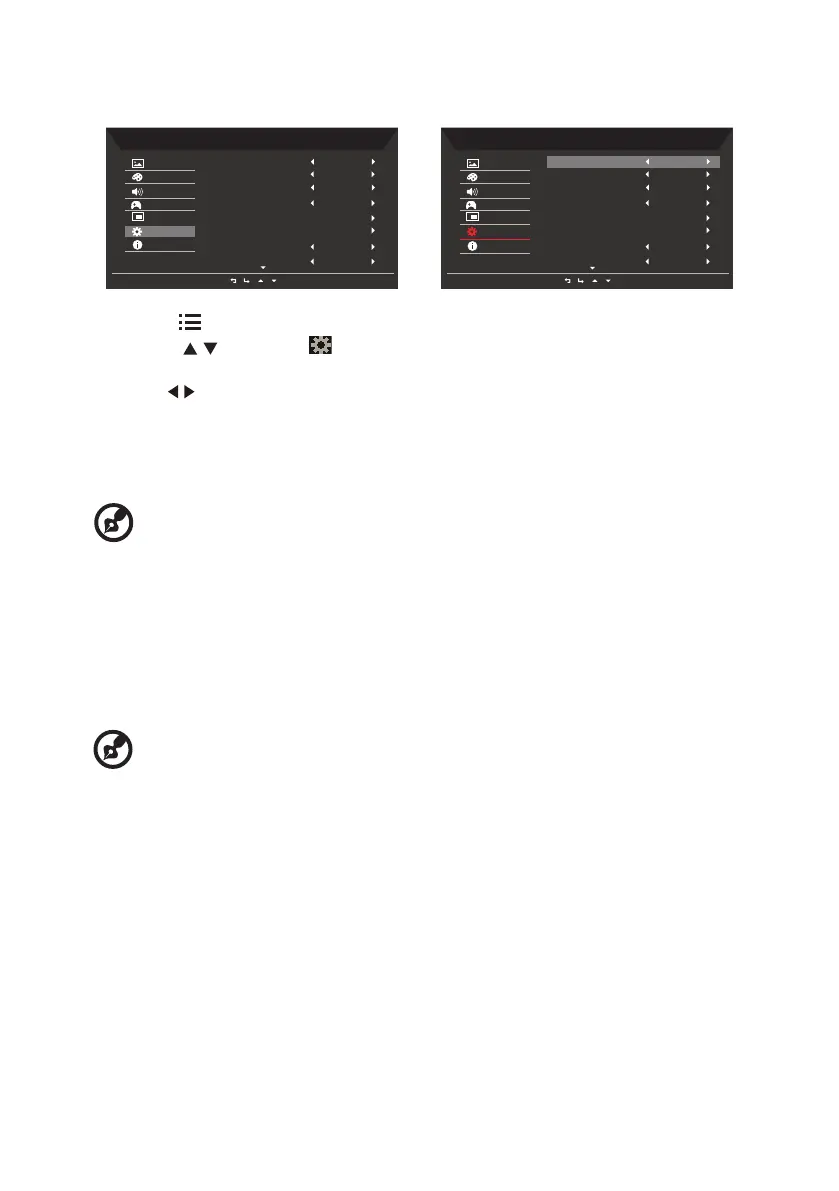 2. Using the / keys, select System from the OSD. Then navigate to the feature you