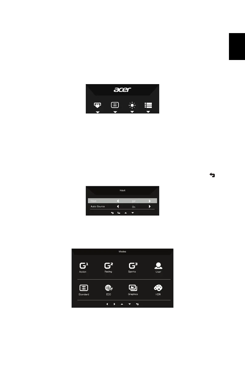 Open the Input control and select DP or HDMI input source. When you are done, use to