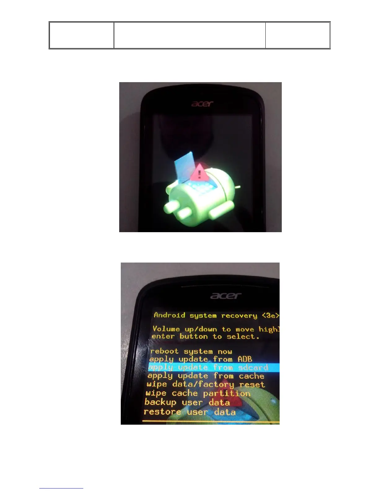 4.Press the volume-down key till the fourth row show the blue background---“apply