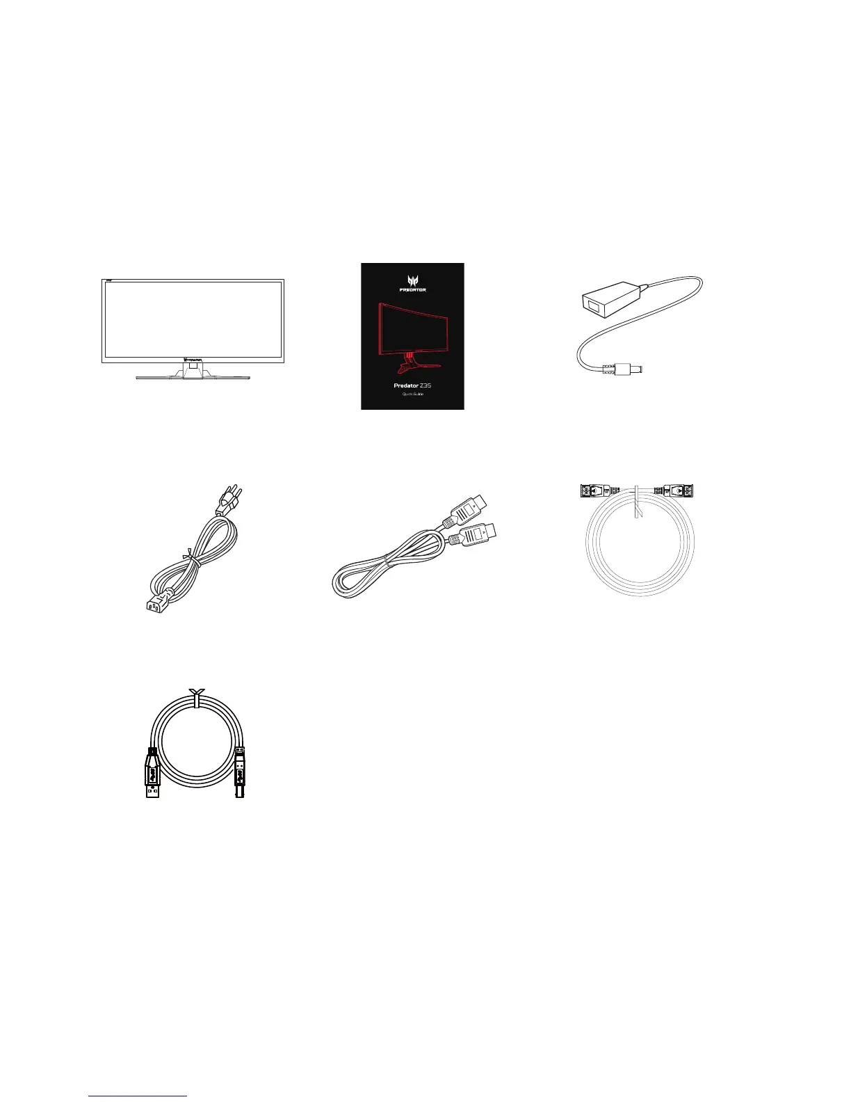 Acer Z35 - Unpacking and Setup; Included Monitor Components; Quick Start Guide Overview; Power and Video Accessories
