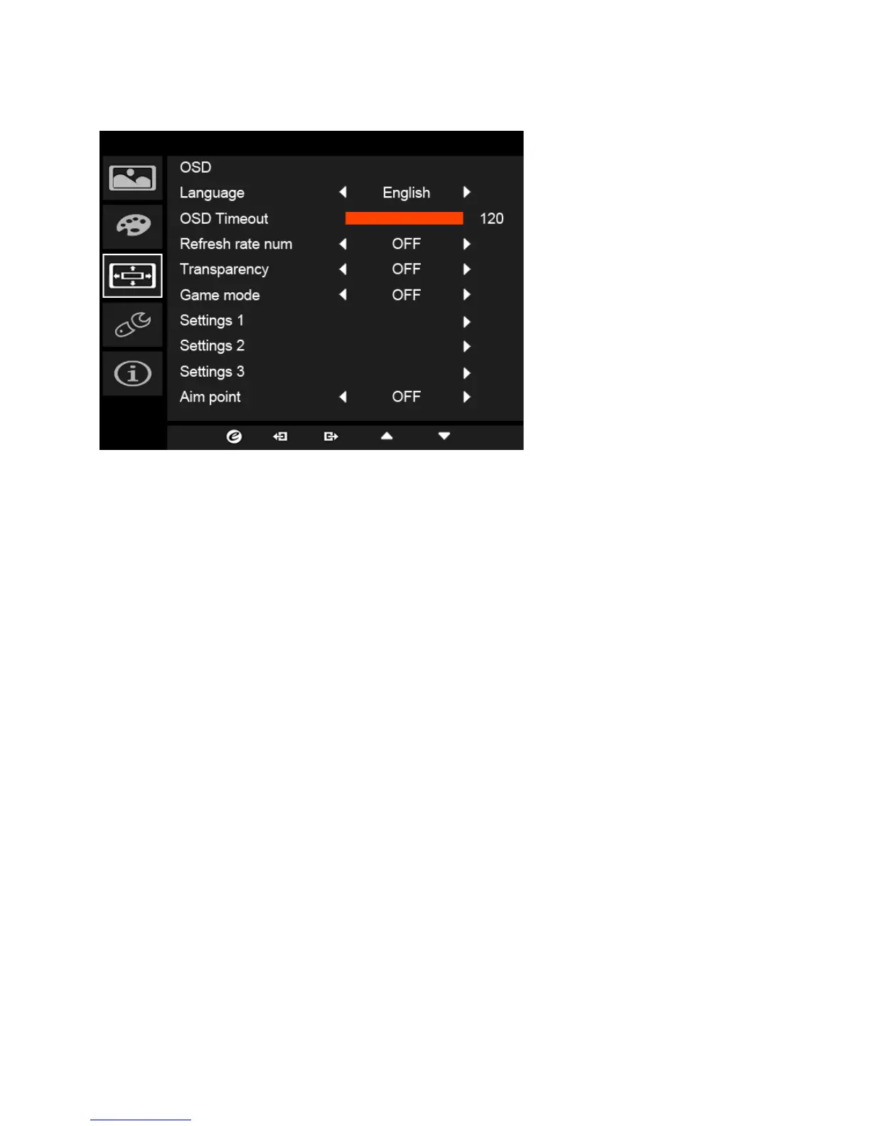 5. OSD timeout: Adjust the delay before turning the off the OSD menu.