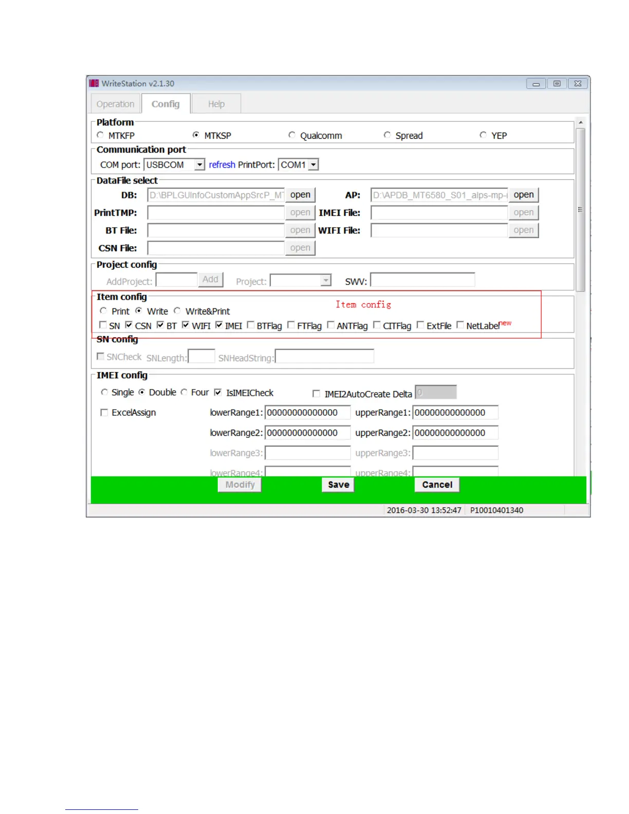 IMEI: IMEI writing will be enabled if this box is checked and disabled while unchecked