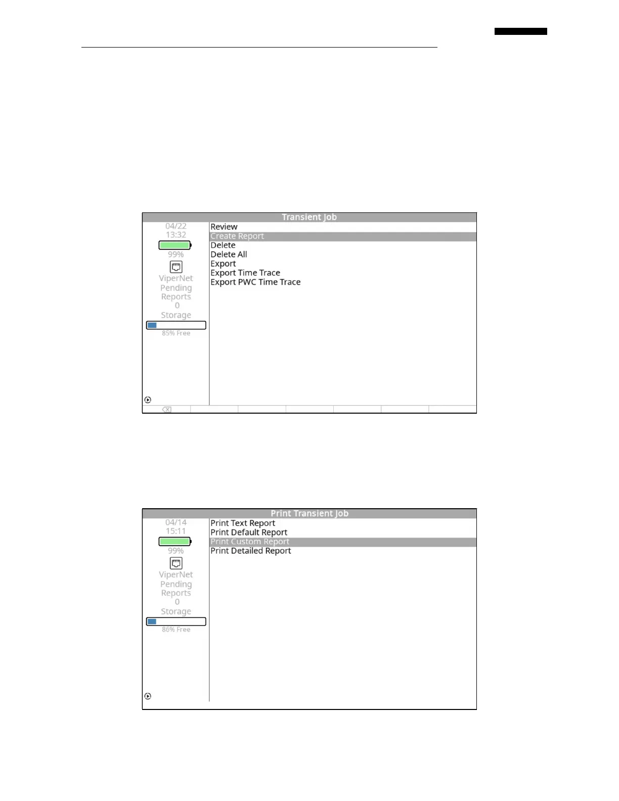 In the Print Transient Job menu, select “Print Custom Report” to begin tailoring the report.