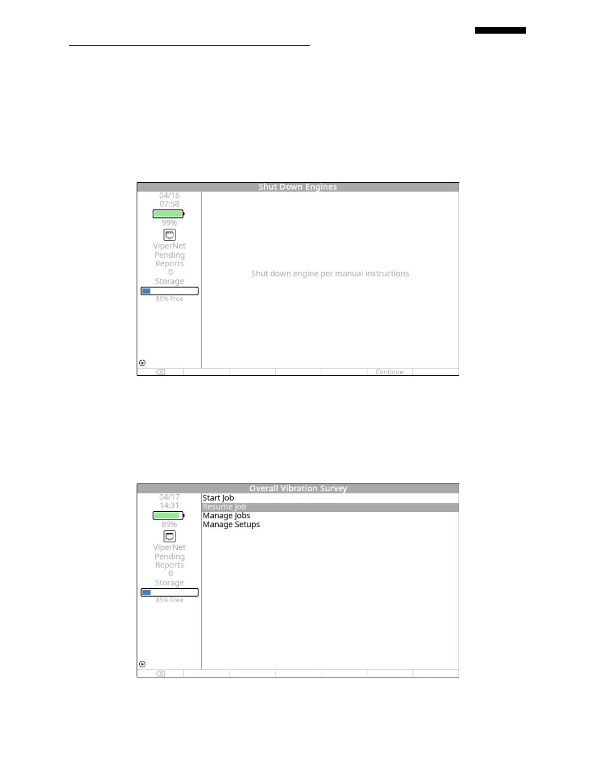 engine(s) per the manual instructions and use the [F5] “Continue” key to mark the job complete