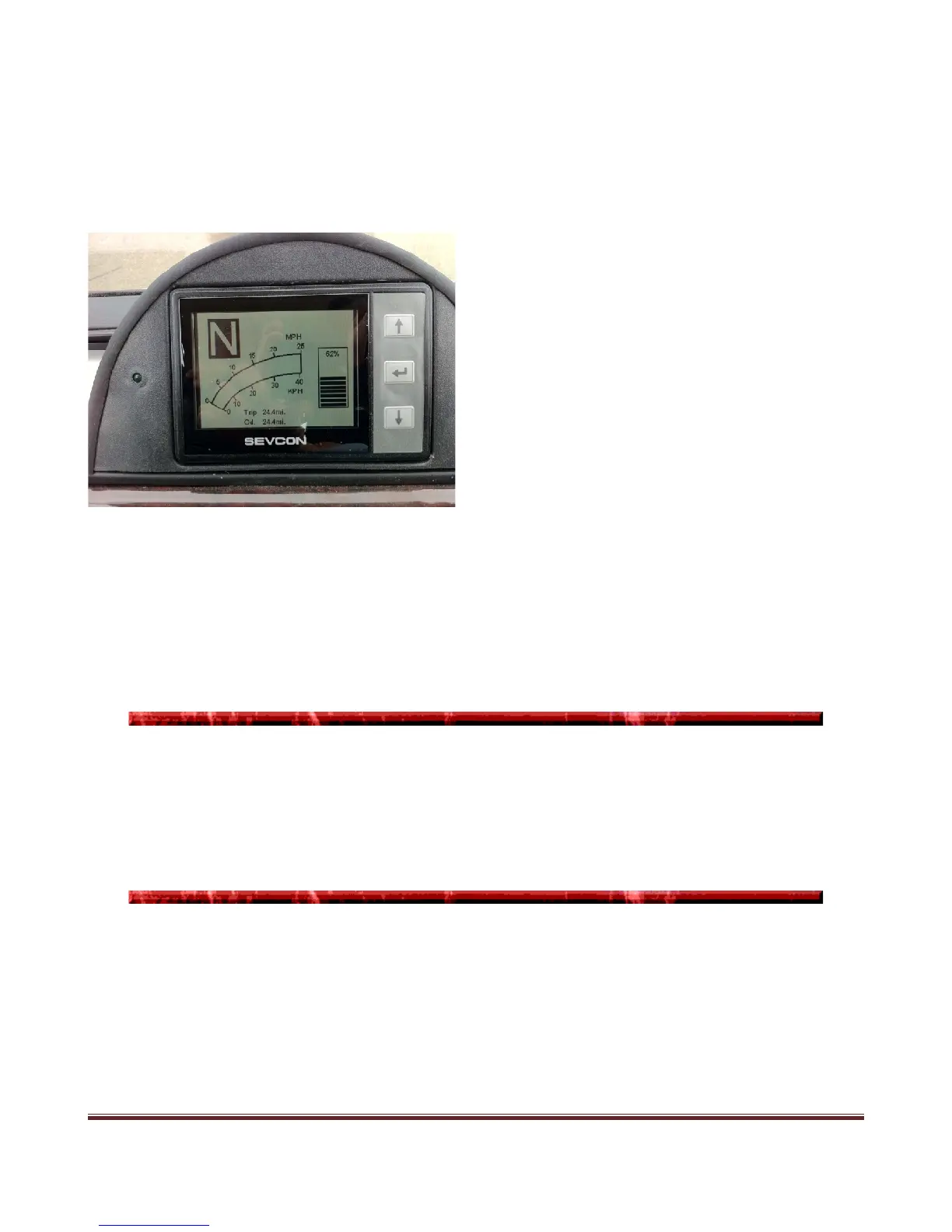 Main screen will display Direction, Speed and Battery Charge Level, it also displays Trip and Odometer