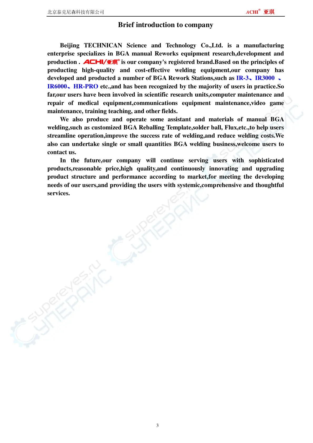 developed and producted a number of BGA Rework Stations,such as I R-3