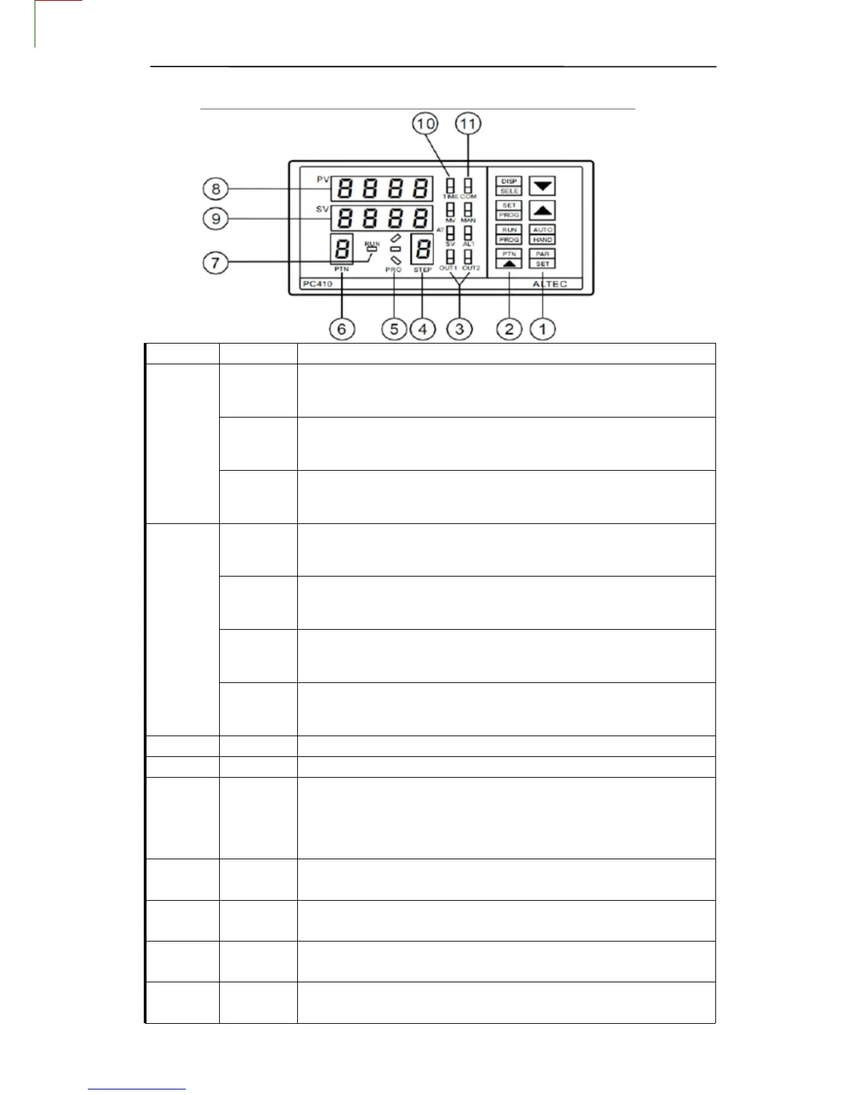 SV It is lit when the Setting Value(SV) is being displayed on the