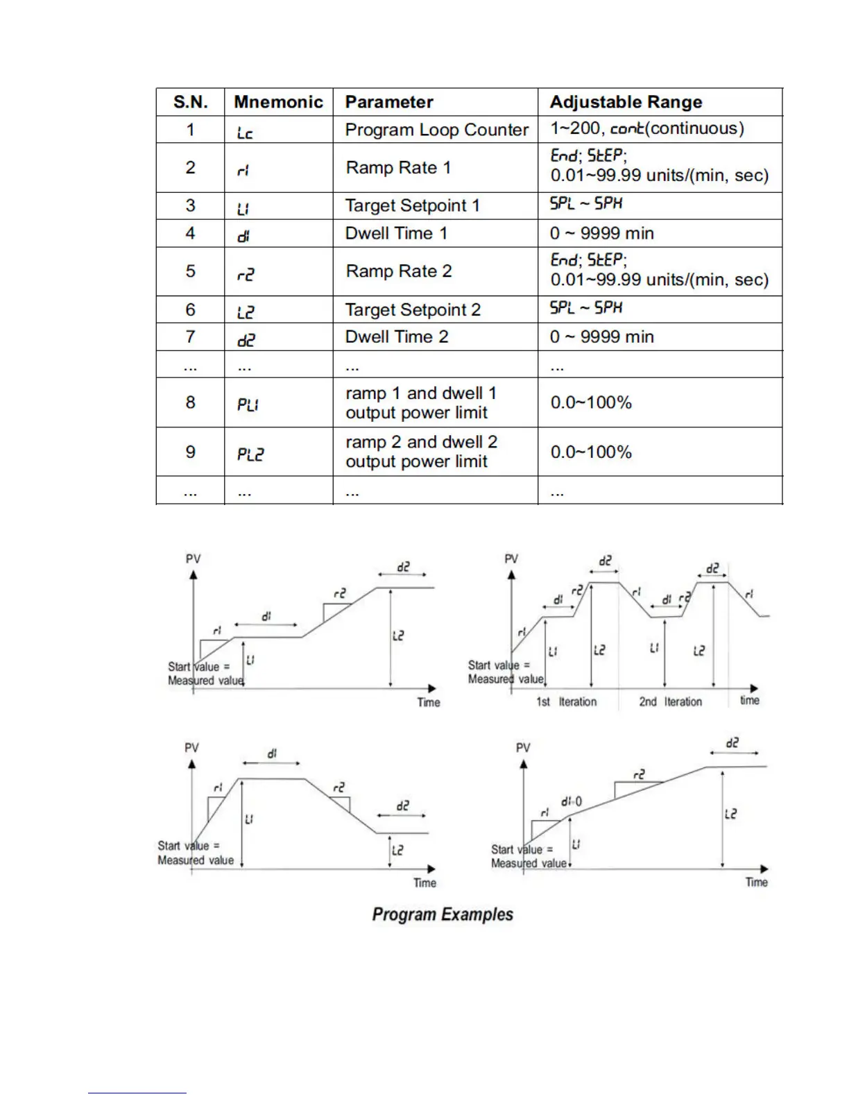 ACHI IR6500 - Temperature Profile Parameters and Examples; Program Parameter List; Program Examples