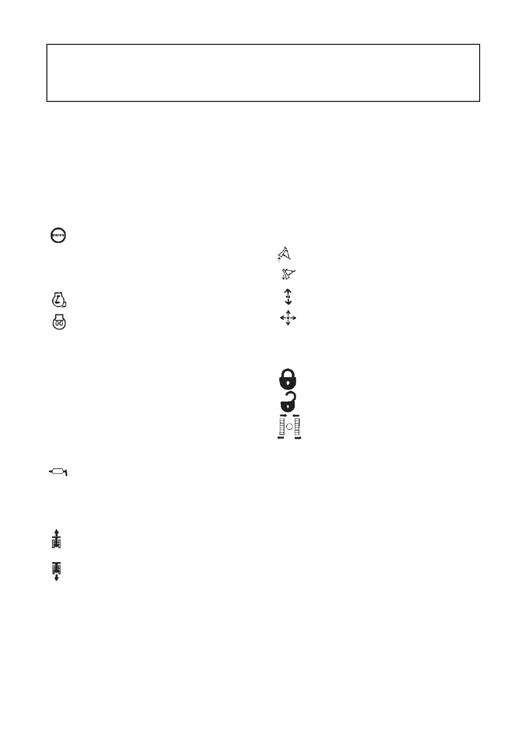 to simplify the operation of your excavator. These symbols are listed below with the respective