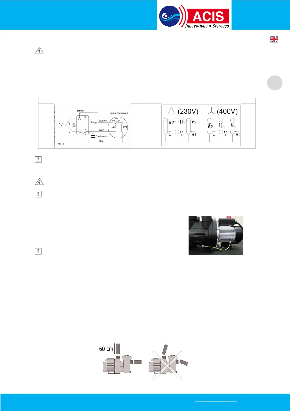 of the assembly operations. We recommend a vertical pipe length of approx. 60cm to facilitate the priming of the pump.