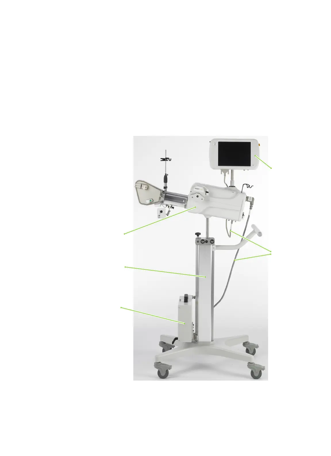 e CVi system, installed on a pedestal cart or bed rail, includes three main