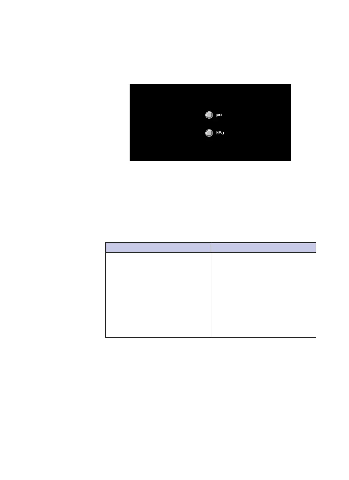 second screen with a choice of pressure units (psi or kPa). Press the button next