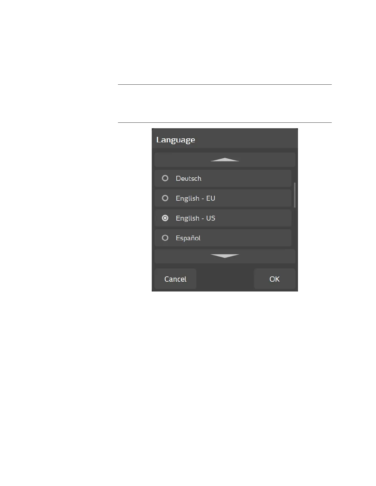 To change the language, use the arrows to scroll to the desired language