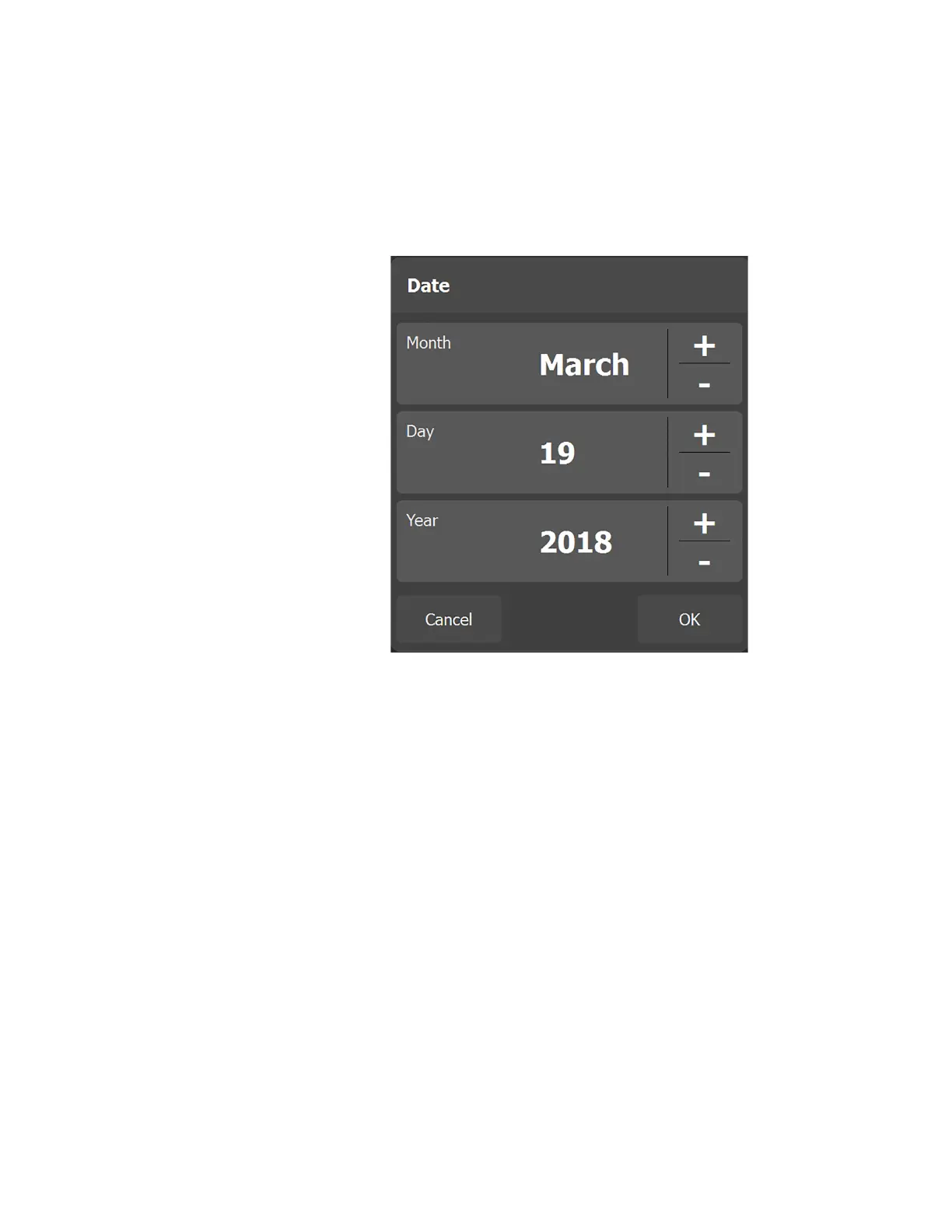 Use the plus (+) and minus (-) buttons to adjust the Month, Day, and/or Year
