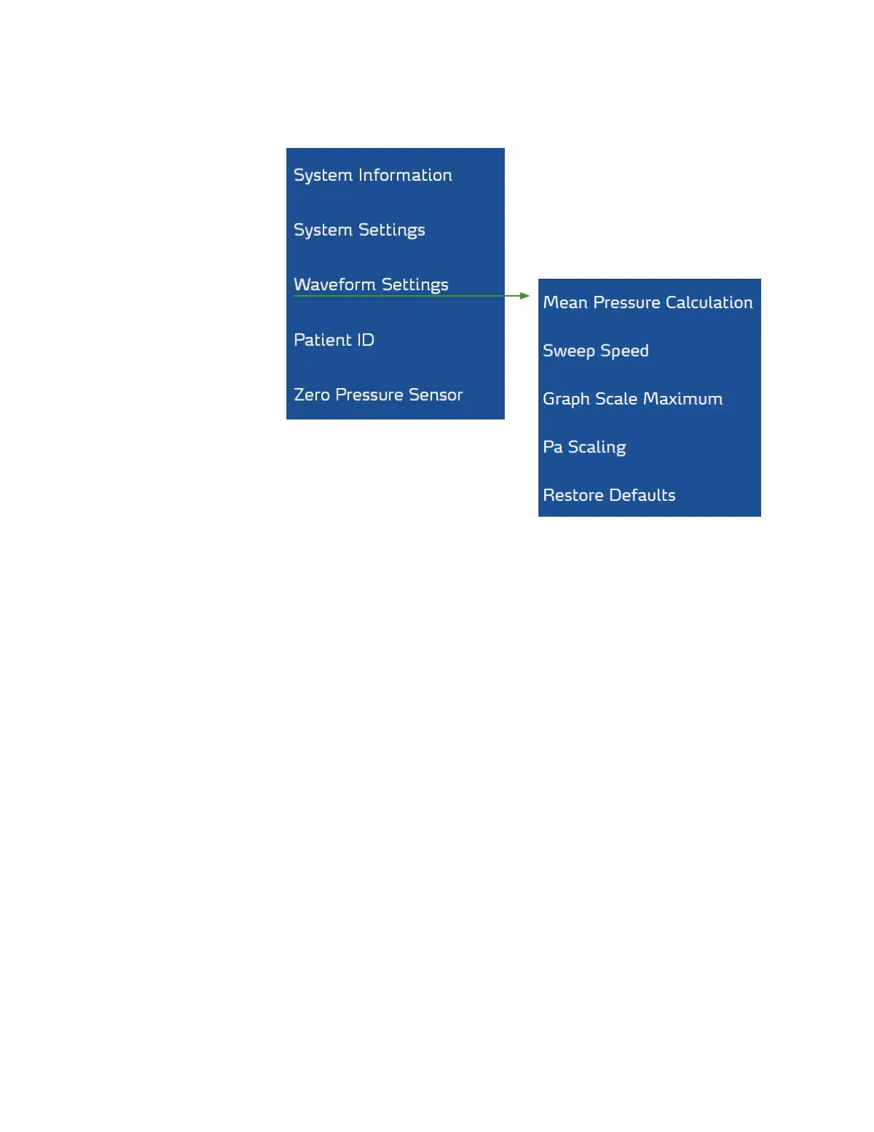 e Waveform Settings option on the ACIST Main Menu provides a submenu