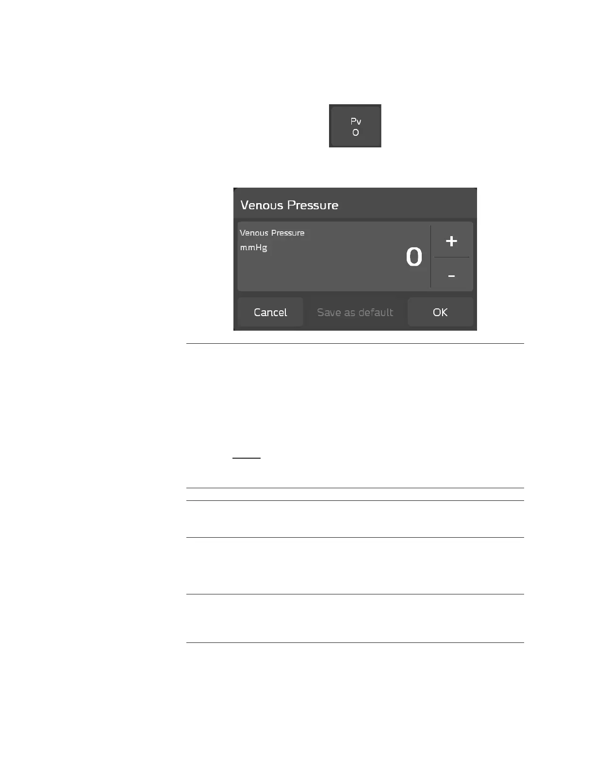 Use the plus (+) and minus (−) buttons in the Venous Pressure pop-up window