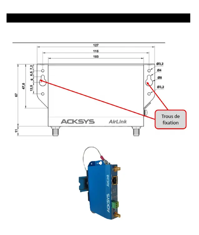 Le produit peut être directement fixé sur un mur à l’aide de trous de fixation Ø4 intégrés