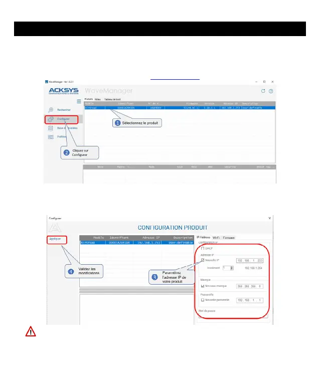 Attention : Si vous modifiez l’adresse IP du produit, pensez aussi à modifier