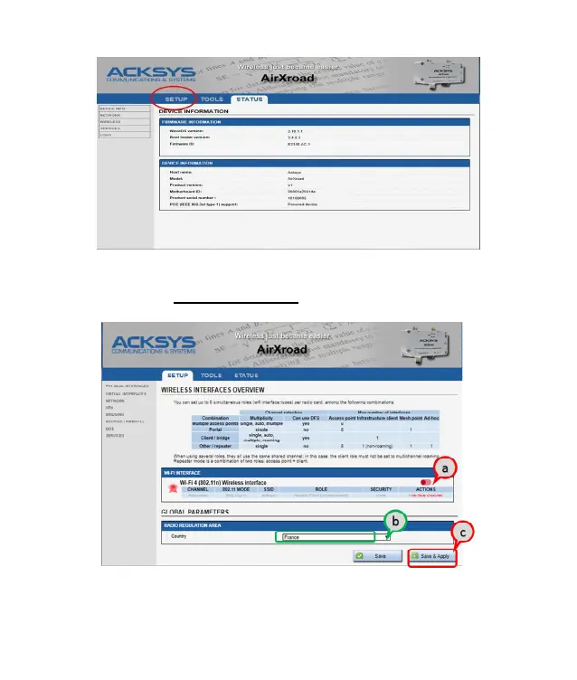 Sélectionner l'onglet "SETUP".