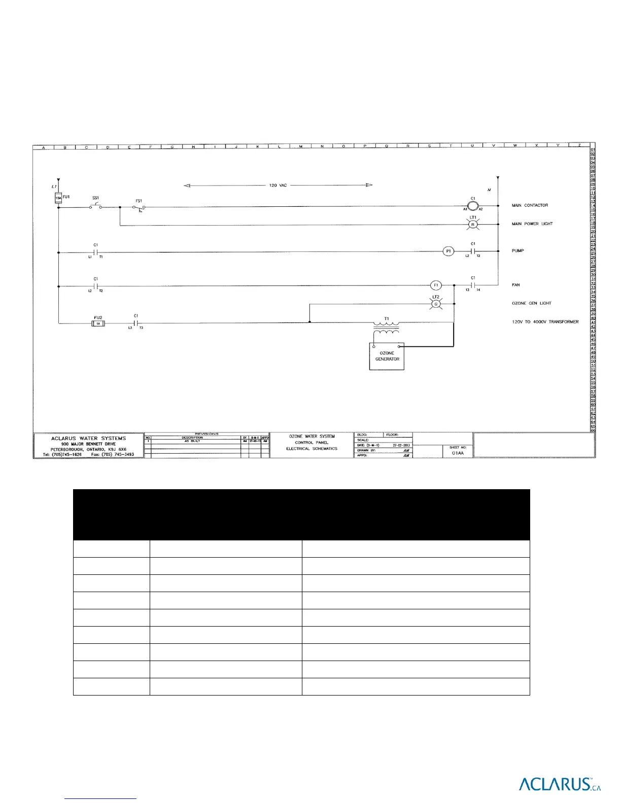 Aclarus AOWT-7 - System Overview - Schematics; Control Panel Wiring