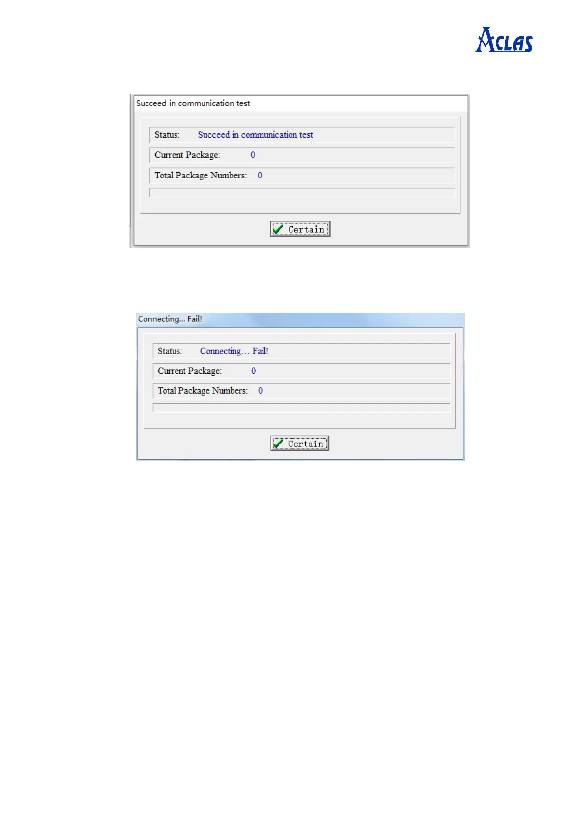 Otherwise, the failure window will be displayed. Users should correct the communication setting