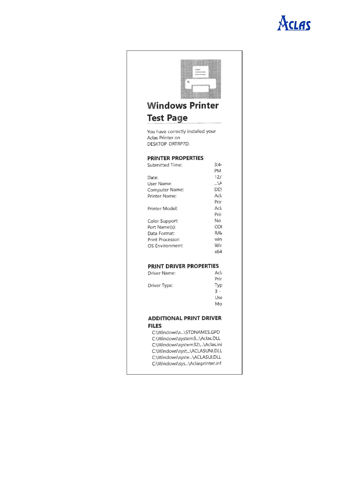 Note: there is the information about computer name, printer name and port name etc. on the print test page. The